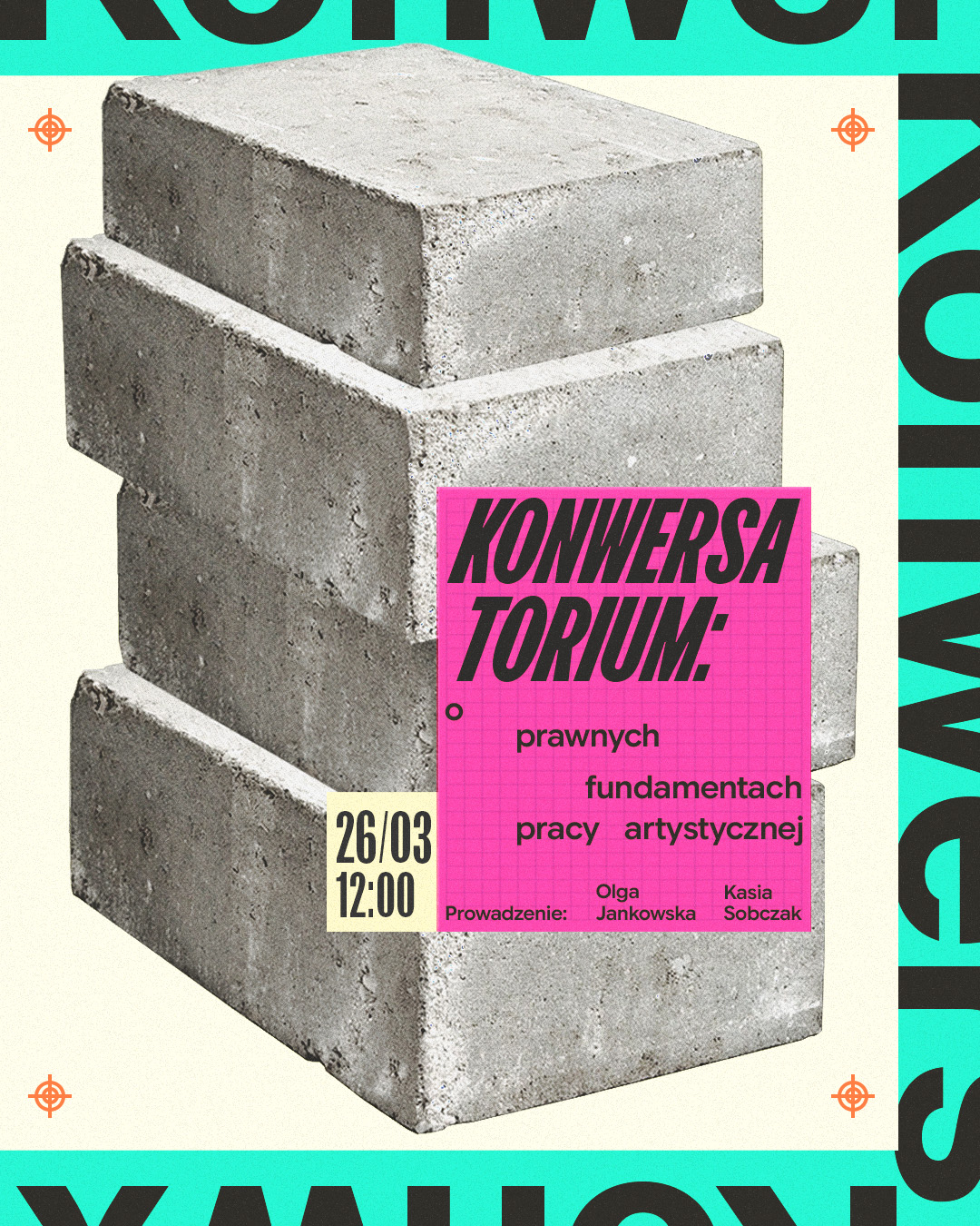 Trzecie konwersatorium w ramach naszego cyklu poświęcone będzie prawnym fundamentom pracy artystycznej. Temat znalazł się wśród kilku zaproponowanych przez osoby uczestniczące w poprzednim spotkaniu. Zależy nam na spotkaniu ze wspólnotą praktyków i praktyczek, którzy podzielą się swoimi opiniami, doświadczeniami oraz potrzebami. Spotkanie odbywa się w ramach cyklu otwartych konwersatoriów skierowanych do artystek, artystów oraz osób twórczych.